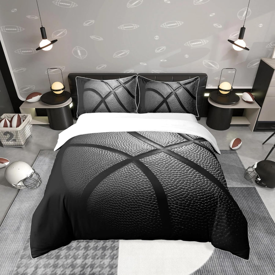 Loussiesd Schwarz Basketball Bettbezug Set Jungs Kinder Sportthema Bettwäsche Set 135x200 cm 3D Bask