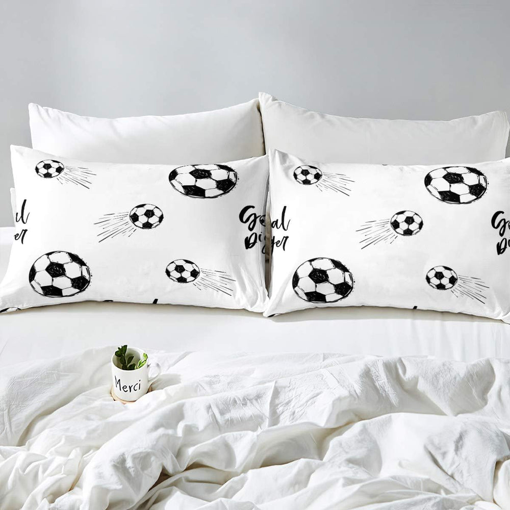 Loussiesd Jungen Fu?Ball Betten Set Sport Thema Bettbezug Set Kinder Fu?Ball Muster Bettw?sche Set 1