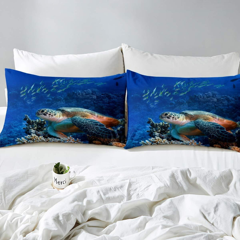 Loussiesd Schildkröte Bettbezug Set Meeresschildkröte Drucken Betten SetMarine Ozean Thema Bettwäsch