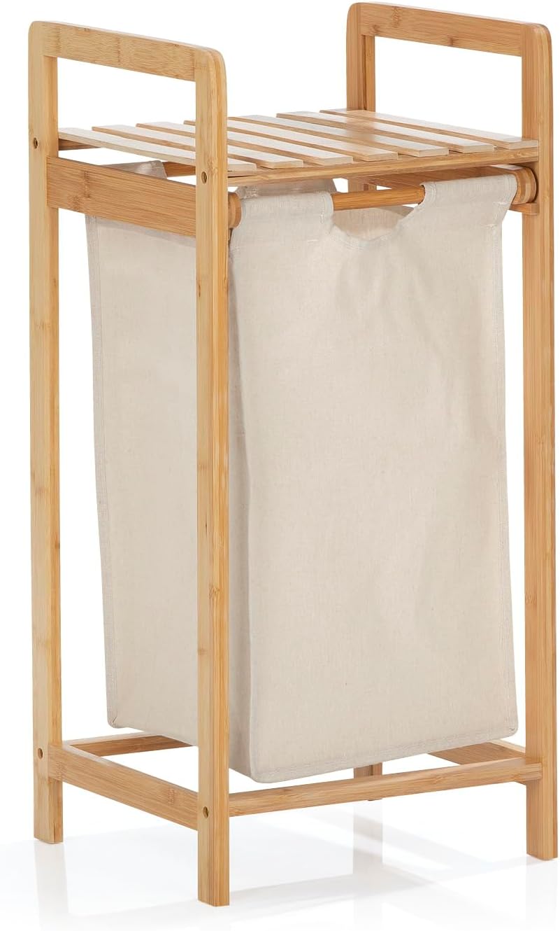 Lumaland Wäschekorb Bambus mit ausziehbarem Wäschesack | Pflegeleichtes Material, unempfindlich gege