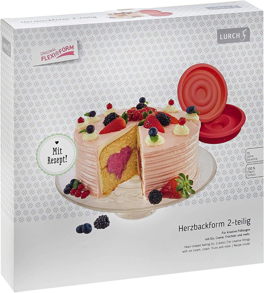 Lurch 85033 FlexiForm rund mit Herzfüllung 2teilig / Backform, Innenmass 21 cm, aus 100% BPA-freiem