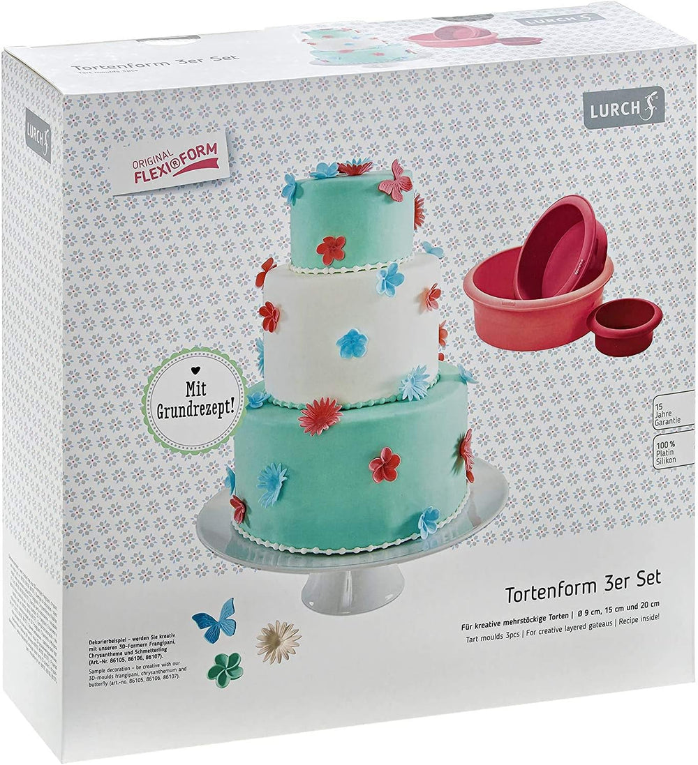 Lurch 83022 FlexiForm Tortenform 3er Set / 3 runde Backformen (Ø 9, 15, 20 cm) aus 100 % BPA-freiem