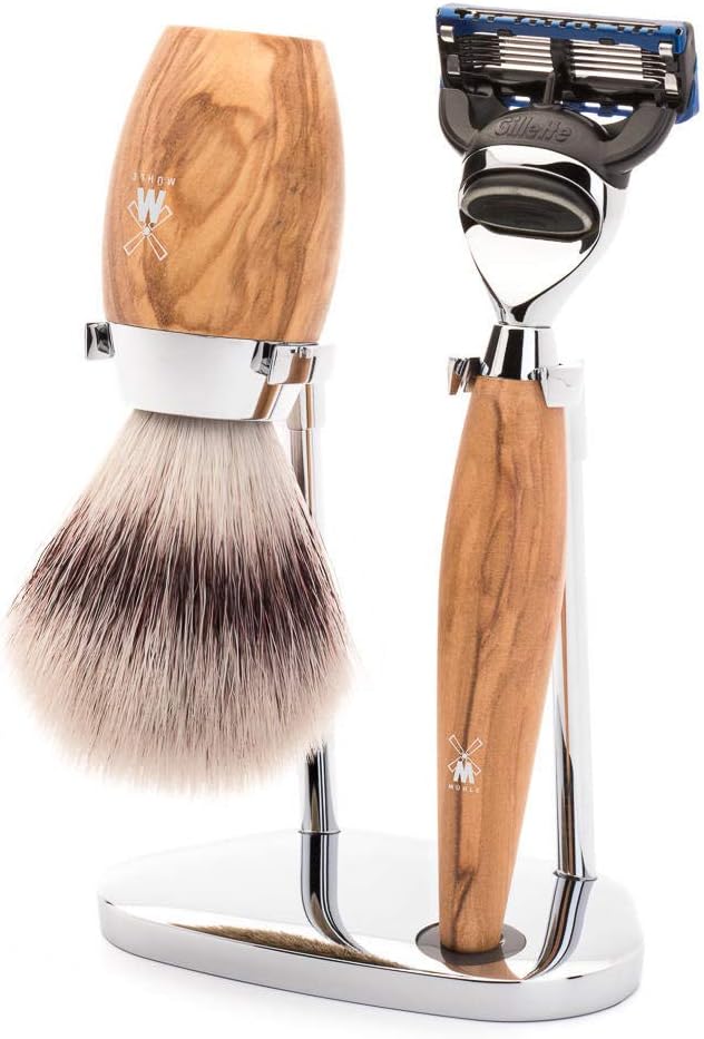 MÜHLE Rasierset - Kosmo Serie - Silvertip Fibre - kompatibel mit Gillette-Klingen - Olivenholz