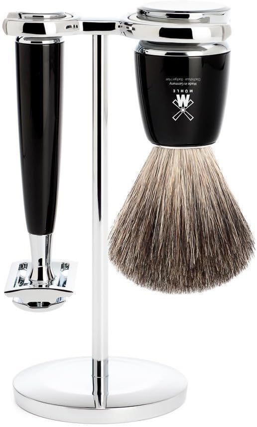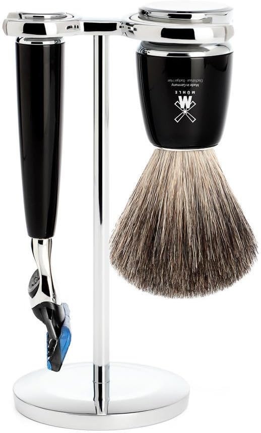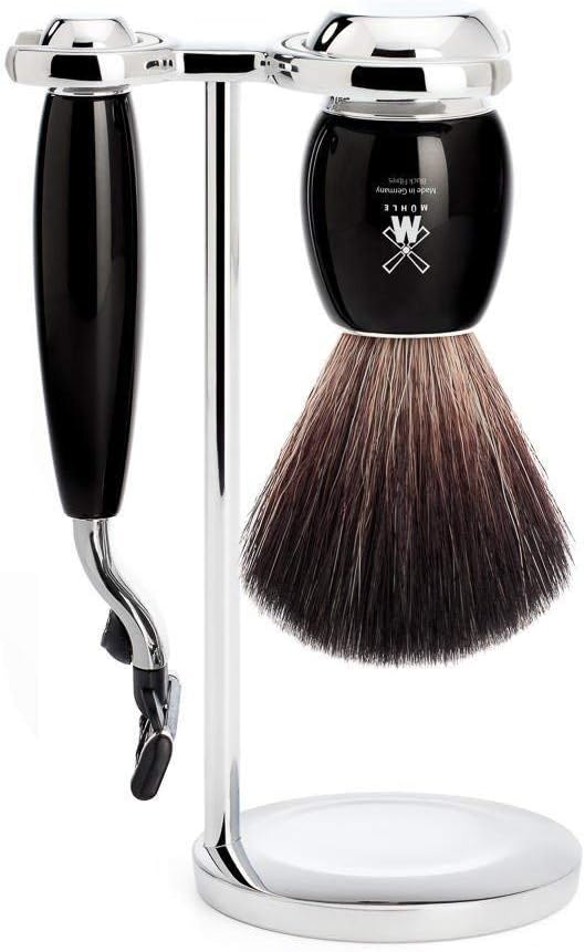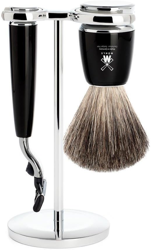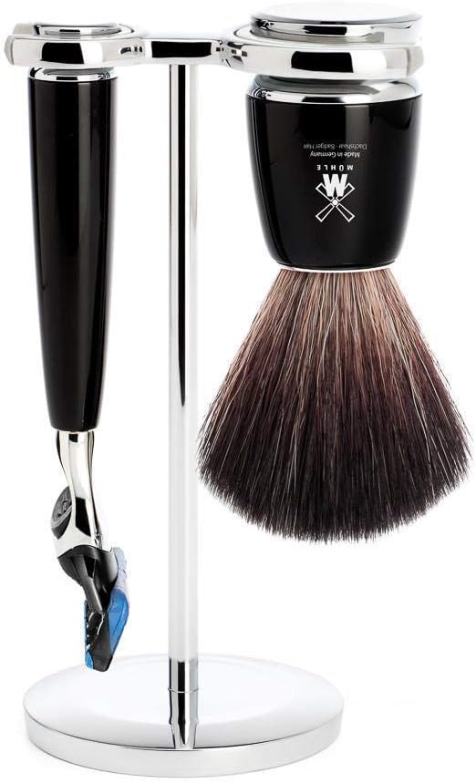 MÜHLE Rasierset - Rytmo Serie - Reines Dachshaar - kompatibel mit Gillette-Klingen - Edelharz schwar