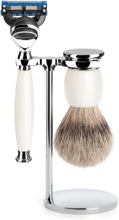 MÜHLE Rasierset - Sophist Serie - Silberspitz Dachszupf - kompatibel mit Gillette-Klingen - Porzella