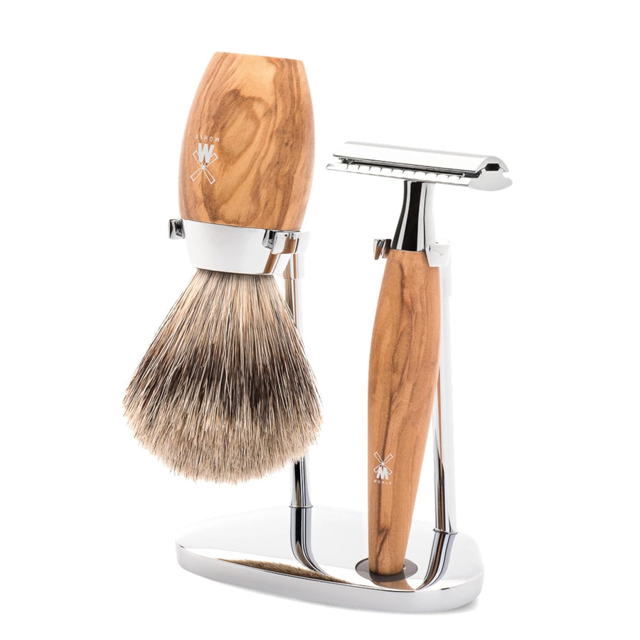 MÜHLE Rasierset - Kosmo Serie - Feines Dachshaar - kompatibel mit Gillette-Klingen - Olivenholz