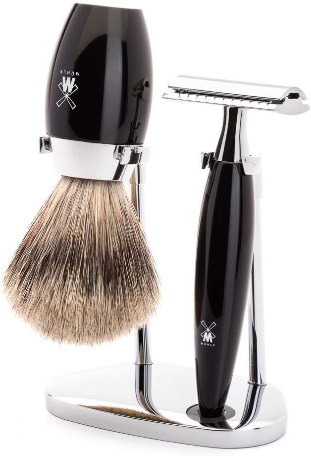 MÜHLE Rasierset - Purist Serie - Silberspitz Dachszupf - kompatibel mit Gillette-Klingen - karelisch