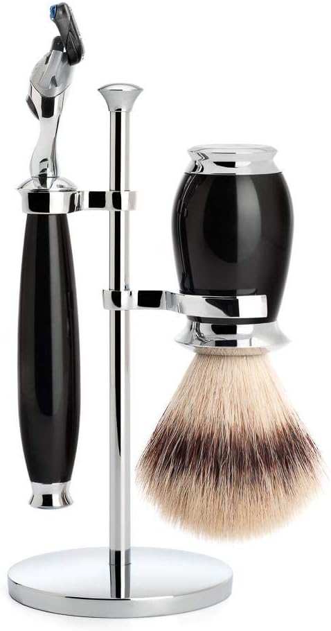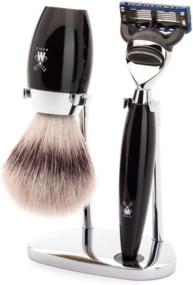MÜHLE Rasierset - Purist Serie - Silvertip Fibre - kompatibel mit Gillette-Klingen - Edelharz schwar