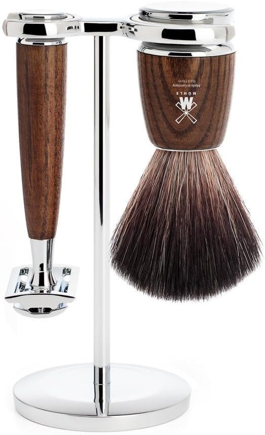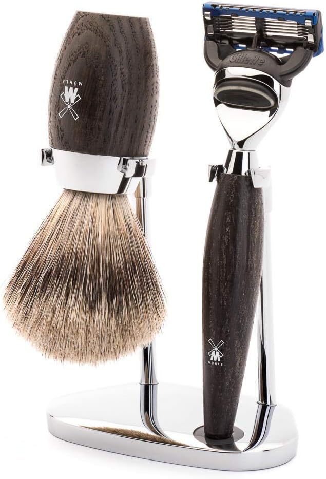 MÜHLE Rasierset - Rytmo Serie - Reines Dachshaar - kompatibel Gillette-Klingen - Eschenholz dunkel