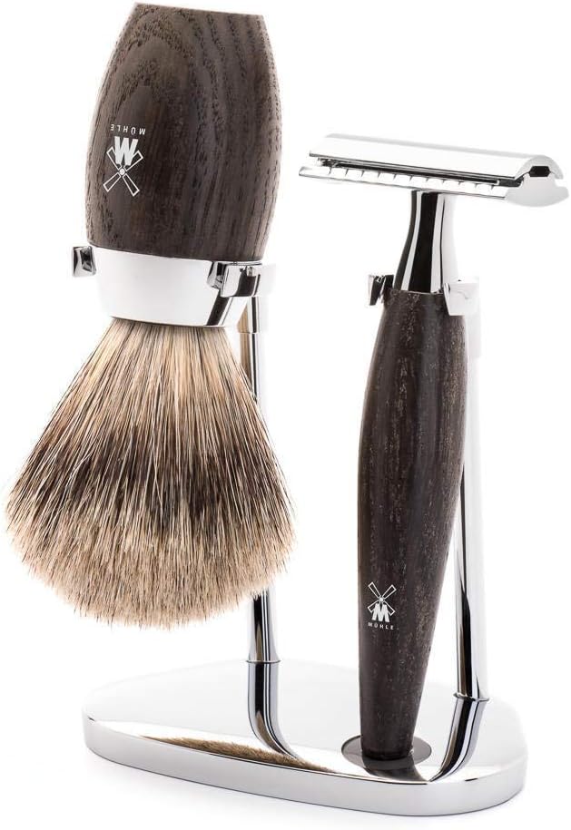 MÜHLE Rasierset - Kosmo Serie - Feines Dachshaar - kompatibel mit Gillette-Klingen - Mooreiche