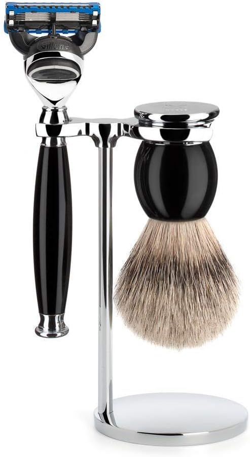 MÜHLE Rasierset - Sophist Serie - Silberspitz Dachszupf - kompatibel mit Gillette-Klingen - Edelharz