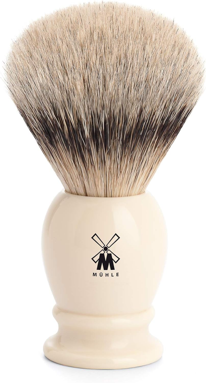 MÜHLE Rasierpinsel - Classic Serie - Silberspitz Dachszupf L - Edelharz elfenbein