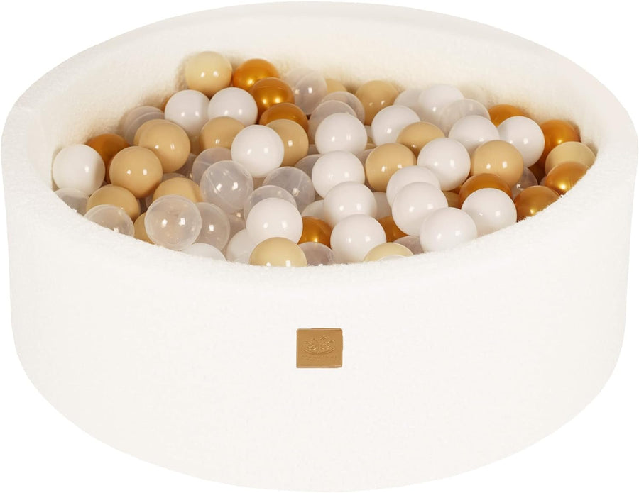 MEOWBABY Bällebad Baby - Rund 90x40cm Ballgruben für Kinder ohne Bälle, Boucle, Weiss, Weiss