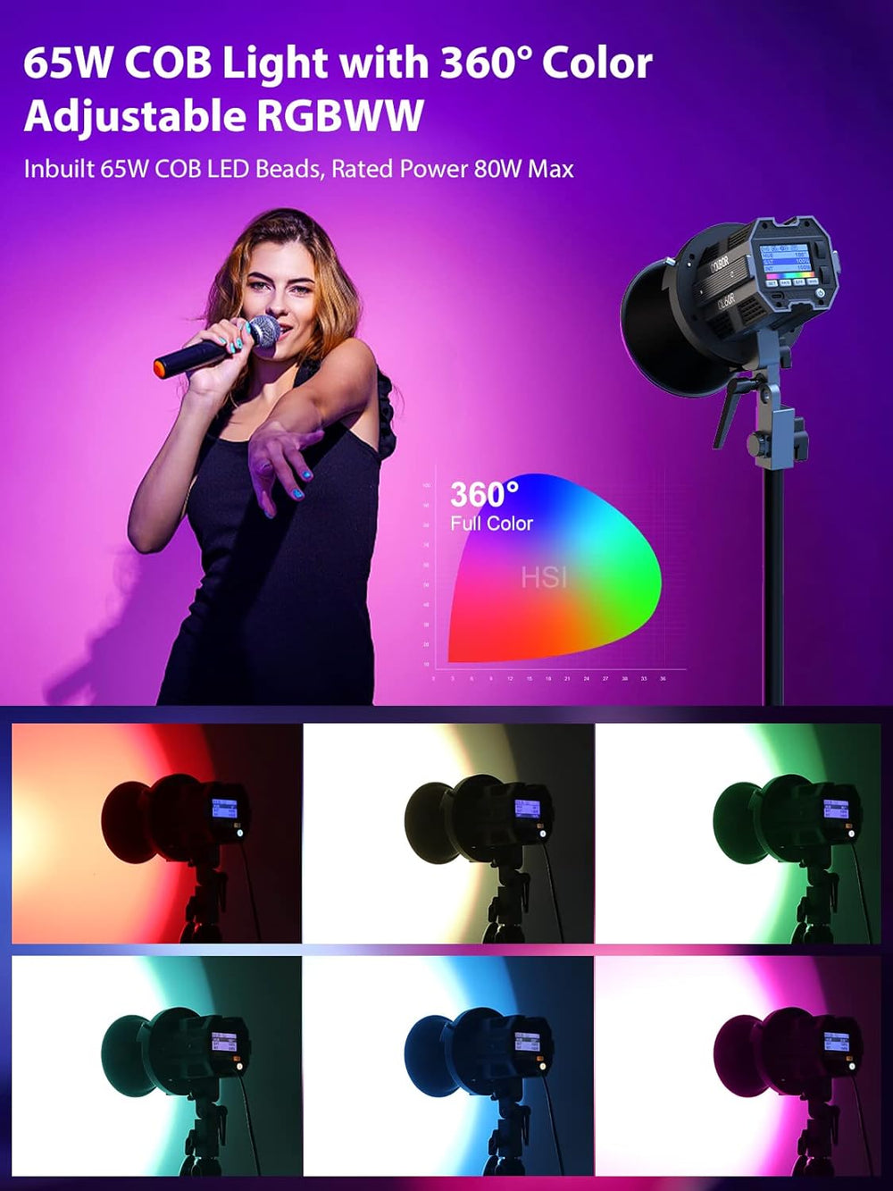Videoleuchte, Colbor CL60R RGB COB Dauerlicht 65W 2700K-6500K Vollfarben LED-Videoleuchte TLCT97+ CR