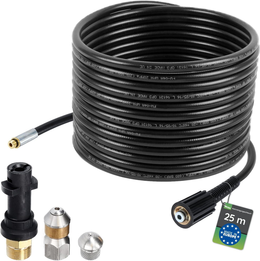 McFilter | Rohrreinigungsschlauch, 25m, 160-200 bar, inkl. Adapter, Düsen starr + rotierend, kompati