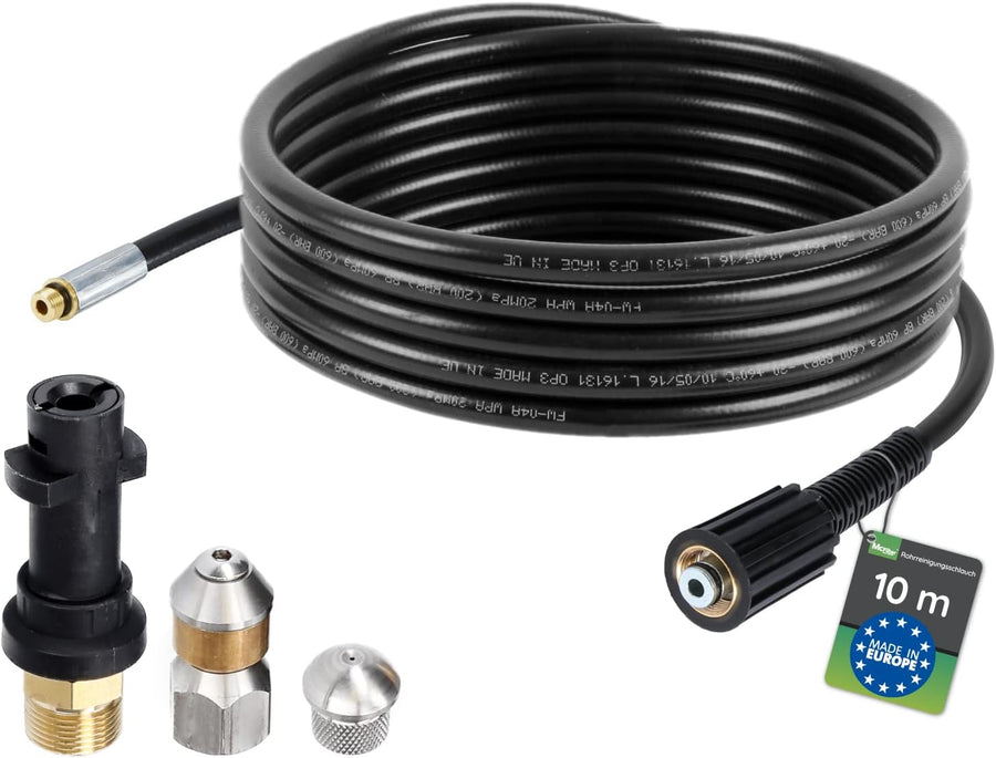 McFilter | Rohrreinigungsschlauch, 10m, 160-200 bar, inkl. Adapter, Düsen starr + rotierend, kompati