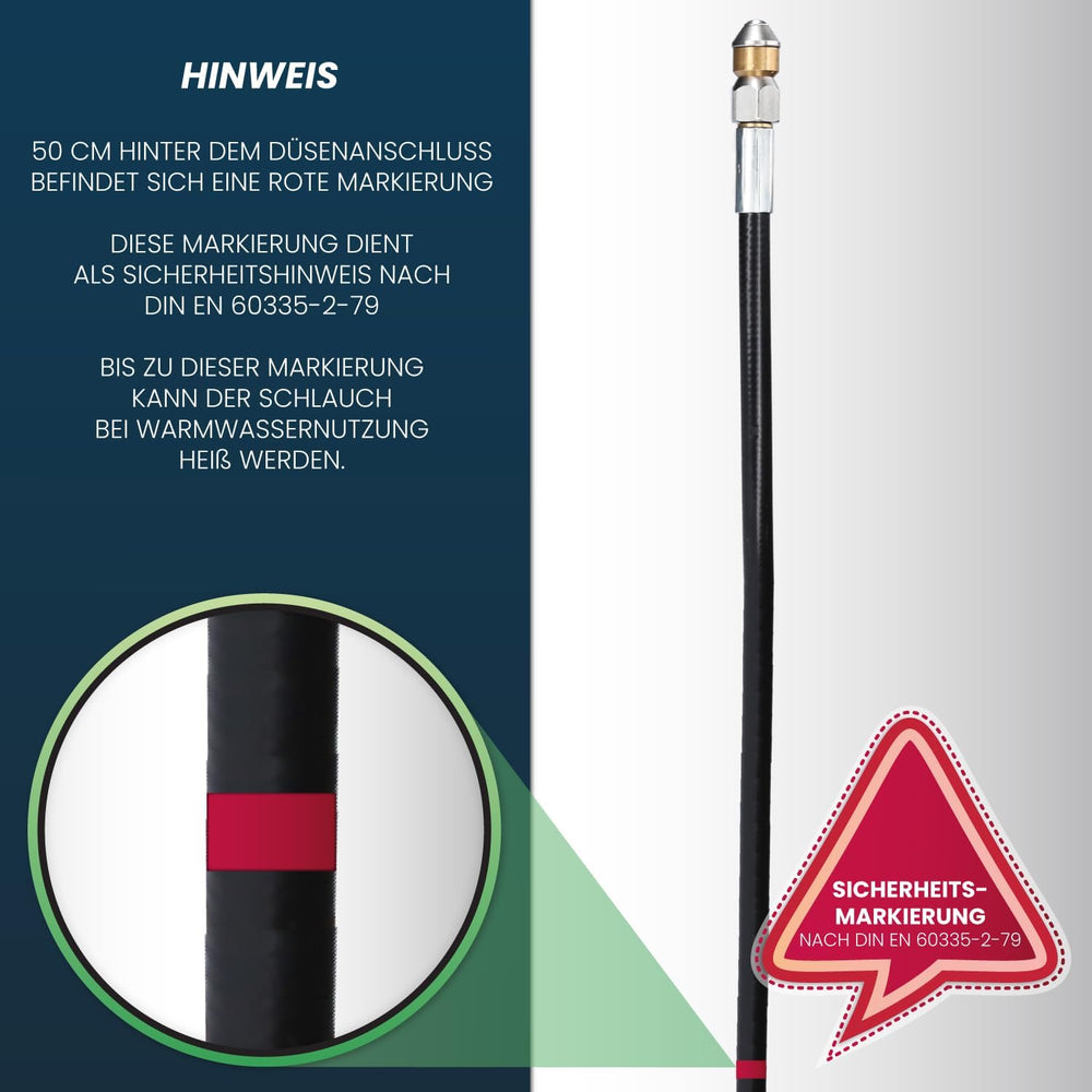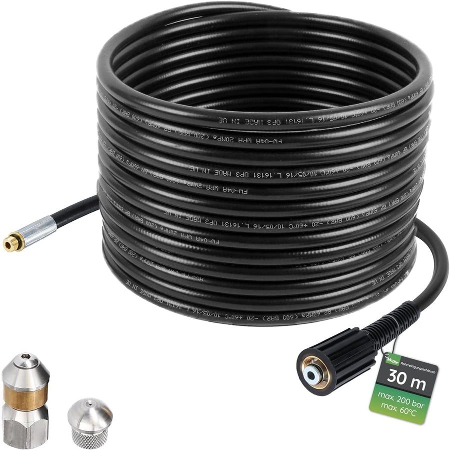 McFilter | Rohrreinigungsschlauch, 30m, 200 bar, 60 °C inkl. Düsen starr + rotierend für Hochdruckre