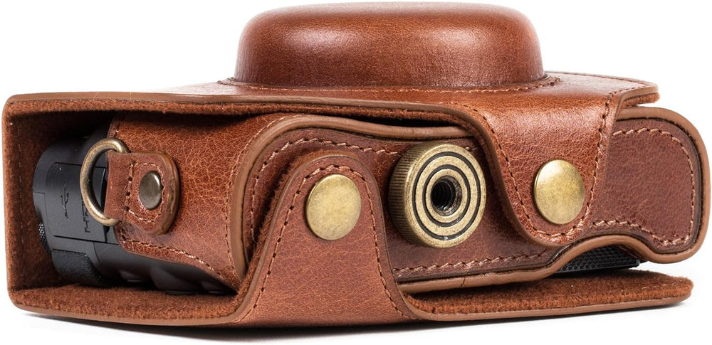 MegaGear MG1176 Canon PowerShot SX740 HS, SX730 HS Ever Ready Echtleder Kameratasche mit Trageriemen
