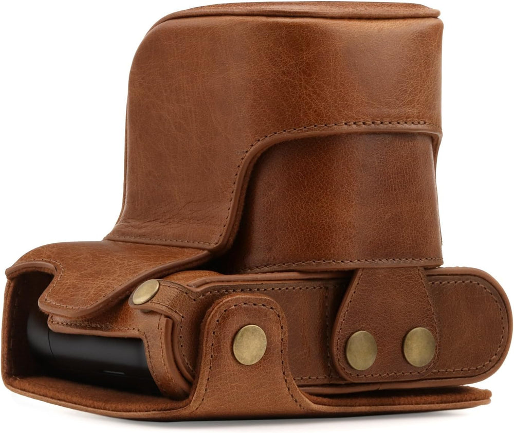 MegaGear MG1015 Ever Ready Leder Kameratasche mit Trageriemen kompatibel mit Sony Alpha A6500 (bis z