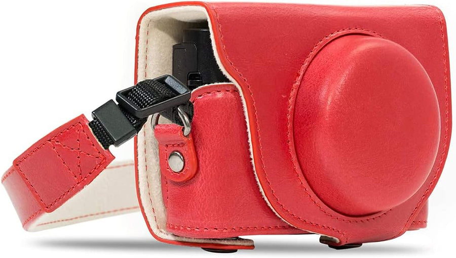 MegaGear MG1262 Panasonic Lumix DC-TZ95, DC-TZ90 Ever Ready Leder Kamera-Case mit Trageriemen - Rot,