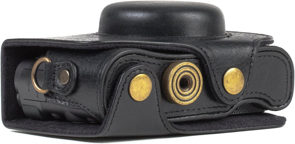 MegaGear MG1402 Leica Q-P, Q (Typ 116) Ever Ready Echtleder Kamera-Case mit Trageriemen - Schwarz, S
