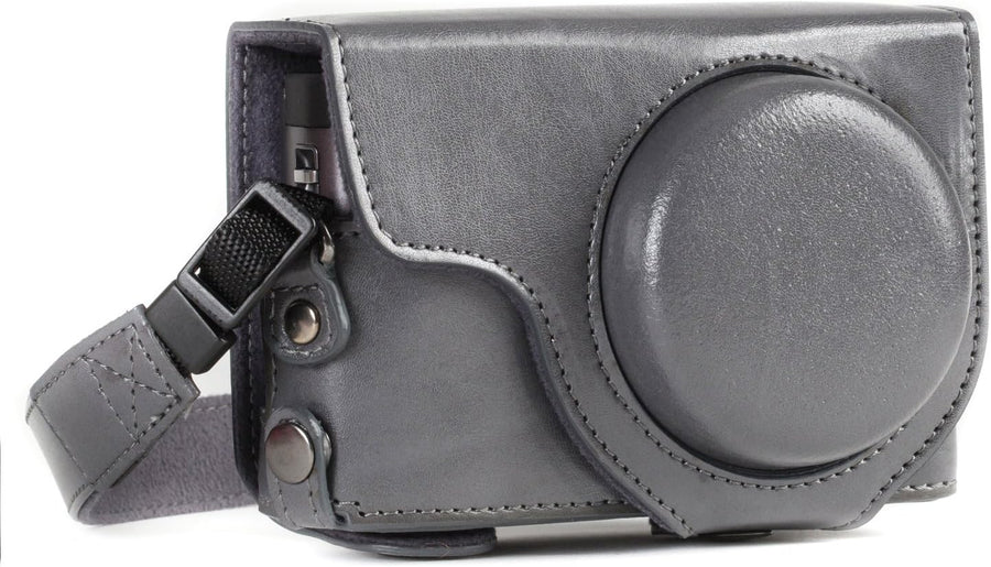 MegaGear MG1261 Panasonic Lumix DC-TZ95, DC-TZ90 Ever Ready Leder Kamera-Case mit Trageriemen - Grau