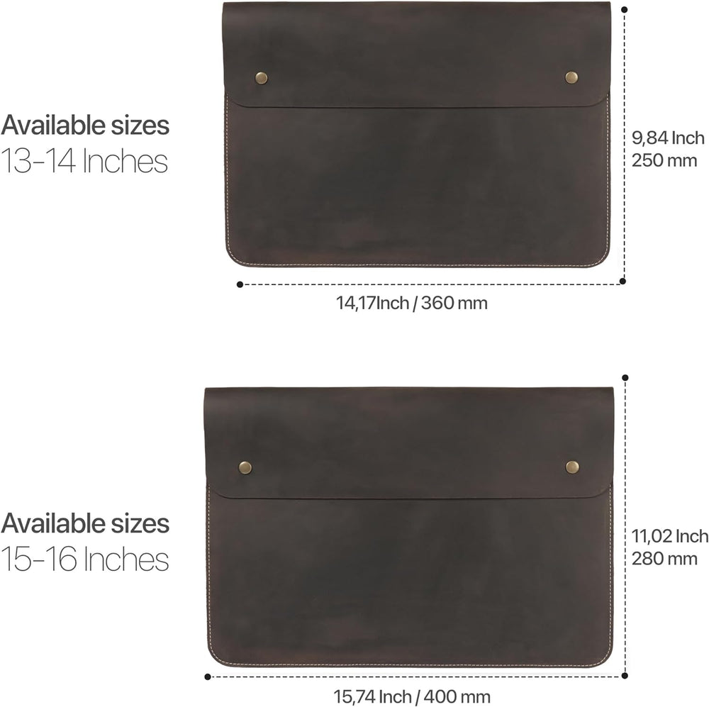 MegaGear MacBook-Tasche aus echtem Leder und Fleece,Laptop-Hülle für MacBook Pro und MacBook Air,14