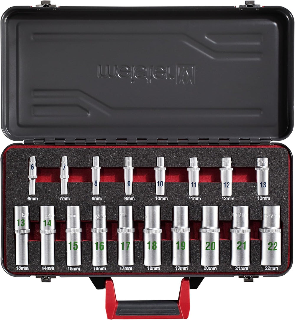 Meister Steckschlüssel-Satz 18-teilig - 1/2 + 1/4 Zoll Antrieb - Extra lange Einsätze - Grosse Ziffe