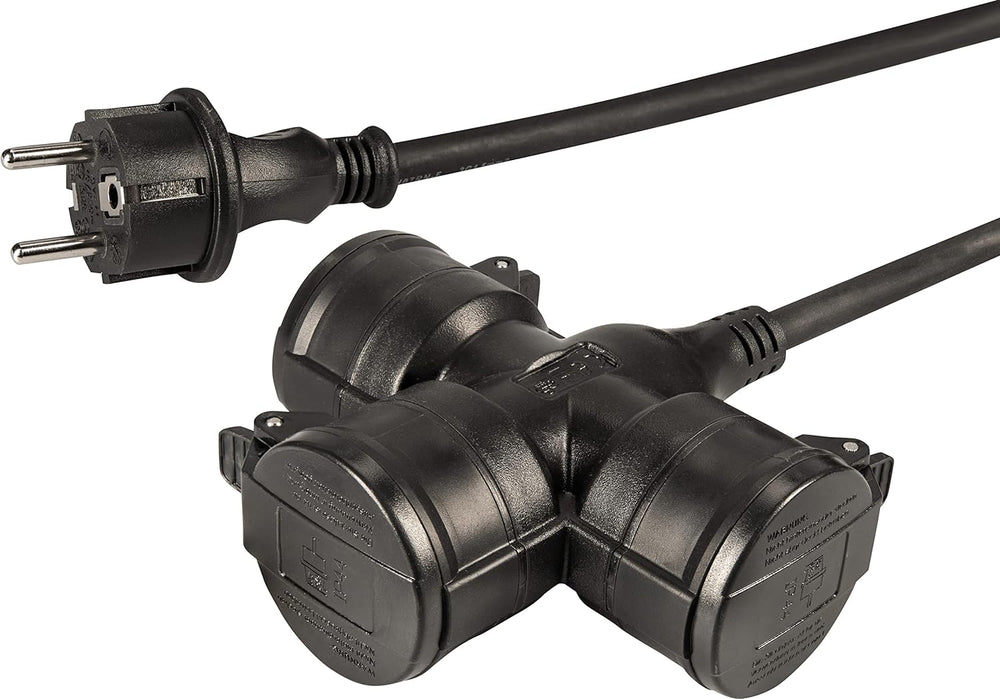 Meister Schutzkontakt-Verlängerung - mit Dreifachkupplung - 10 m Kabel - Gummischlauchleitung - IP44