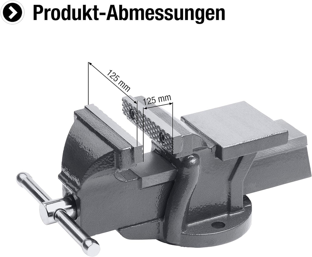 Meister Schraubstock - Feststehend - 125 mm Spannweite - Hochwertige Stahlbacken - Sicheres Fixieren