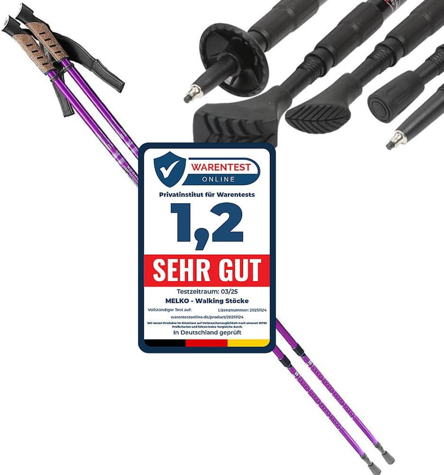 Melko Walking Stöcke aus Duraluminium, 2er Set, frei verstellbar durch Teleskop-System 65 – 135 cm G