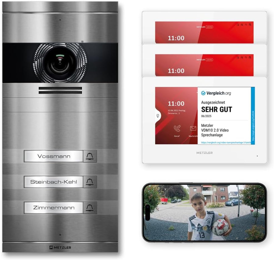 Metzler VDM10 2.0 Video -Türsprechanlage - LAN POE - 3 Familienhaus Türklingel in V2A Edelstahl mit