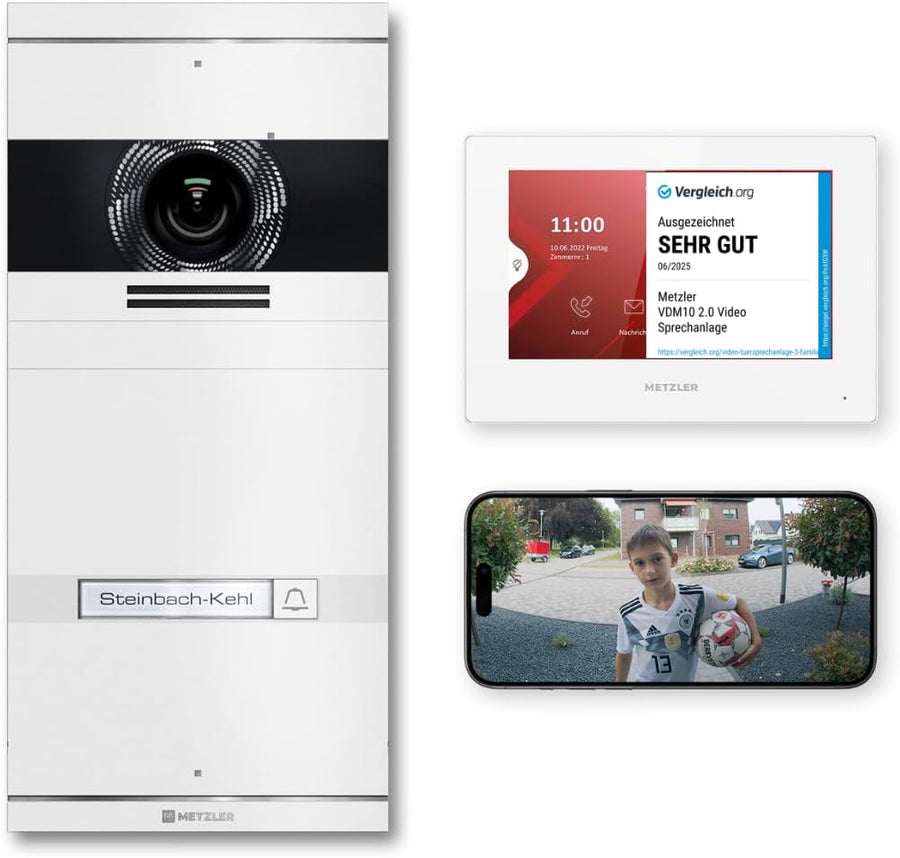 Metzler Video Türsprechanlage 2 Familienhaus | Türklingel mit Kamera FullHD | Opt. 7" Monitor | Smar