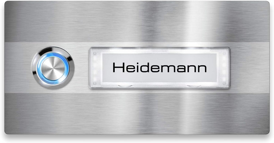 Metzler Türklingel V2A Edelstahl - LED-Beleuchtung - Namensschild austauschbar (Namensschild mit Bel