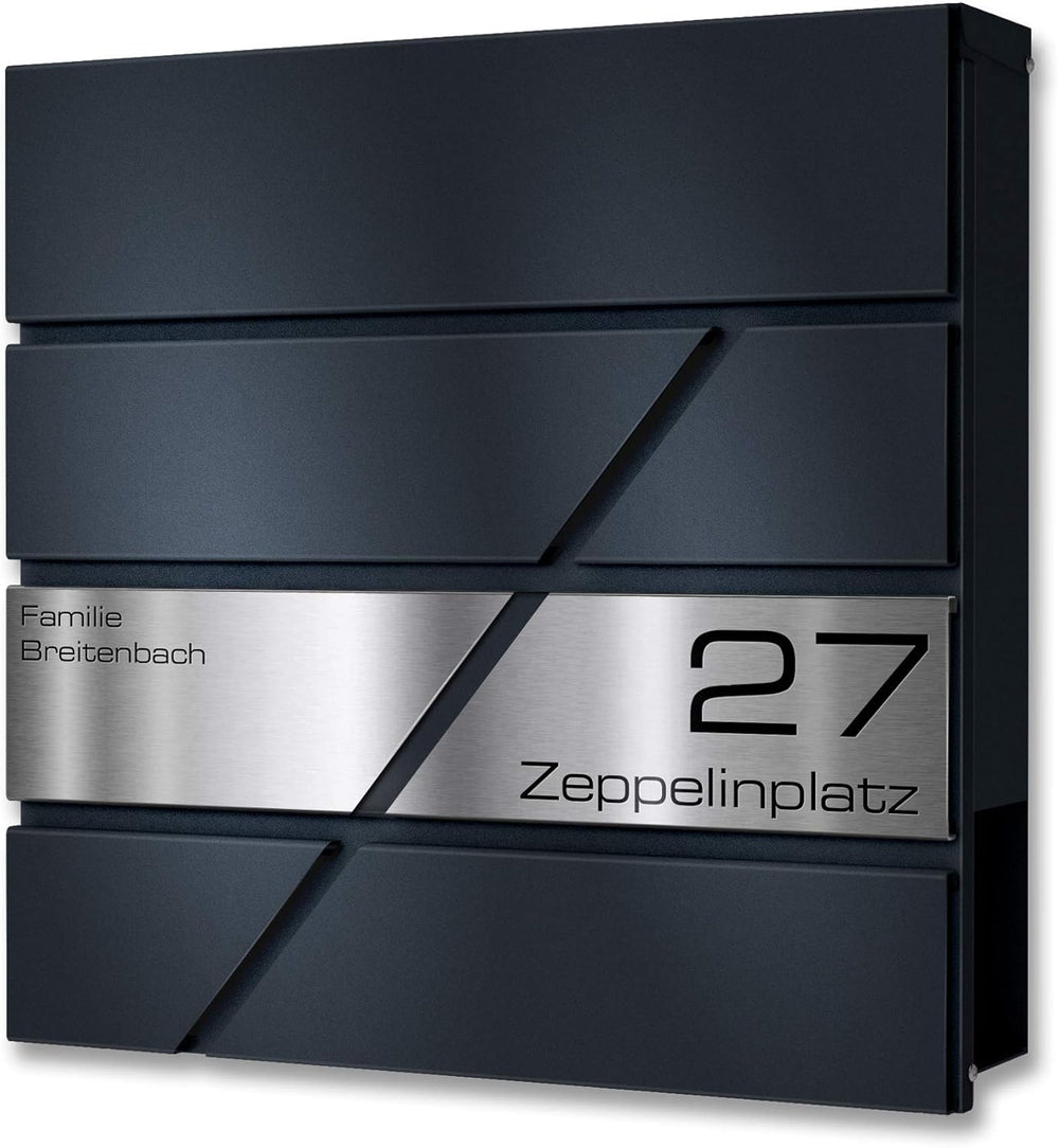 Metzler Wandbriefkasten Modell Zeppelin - Pulverbeschichtetes Matt Anthrazit RAL 7016 | V2A Edelstah