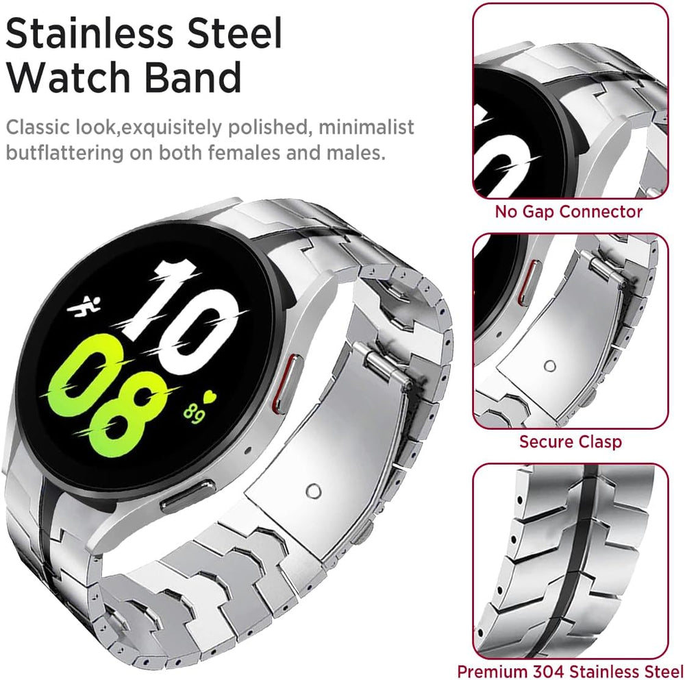 Miimall Kompatibel mit Samsung Galaxy Watch 6/5/4 Armband 40mm 44mm, Edelstahl Metall Doppelte Falts