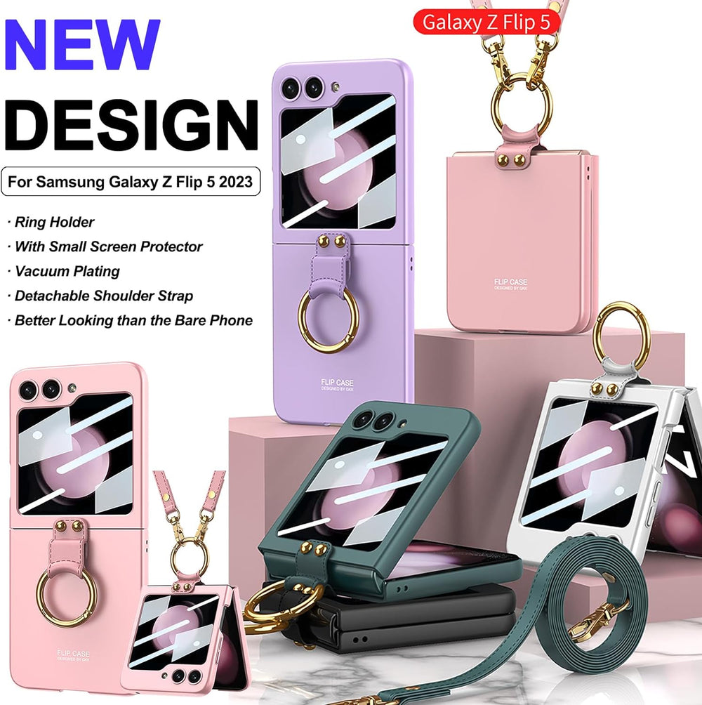 Miimall Kompatibel mit Samsung Galaxy Z Flip 5 Hülle mit Kameraschutz, [Externer Bildschirmschutz] Z