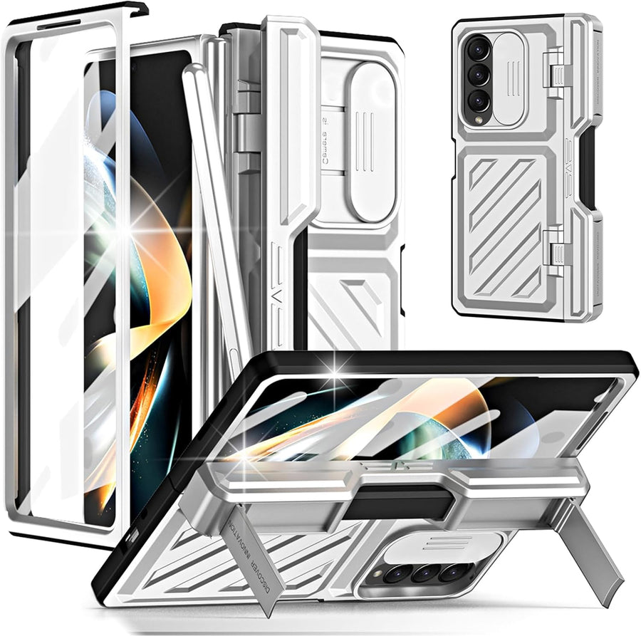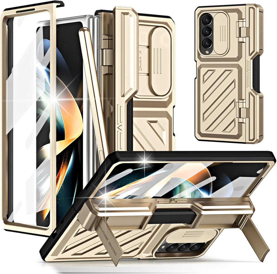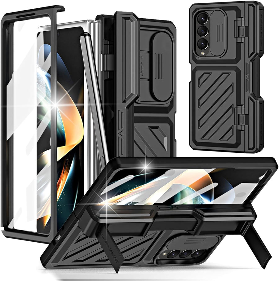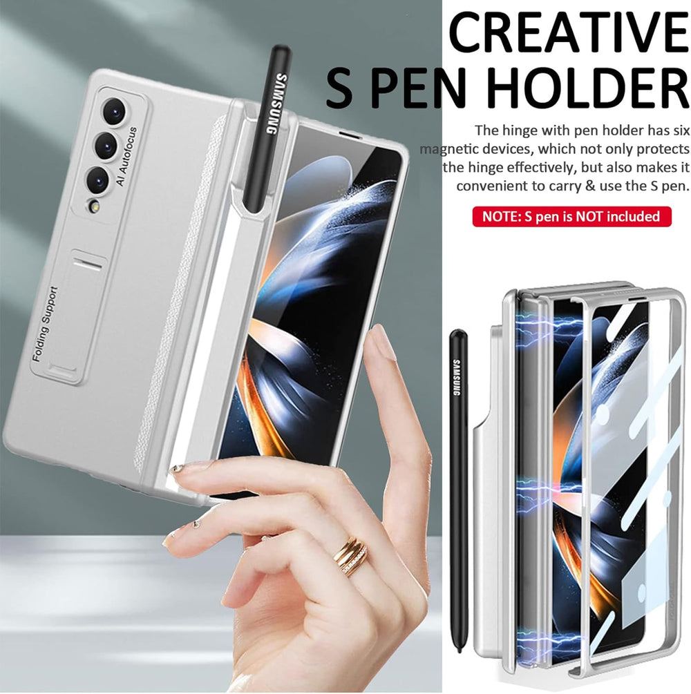 Miimall Kompatibel mit Samsung Galaxy Z Fold 4 Hülle mit S Pen+Displayschutz+Kameraschutz, [Scharnie