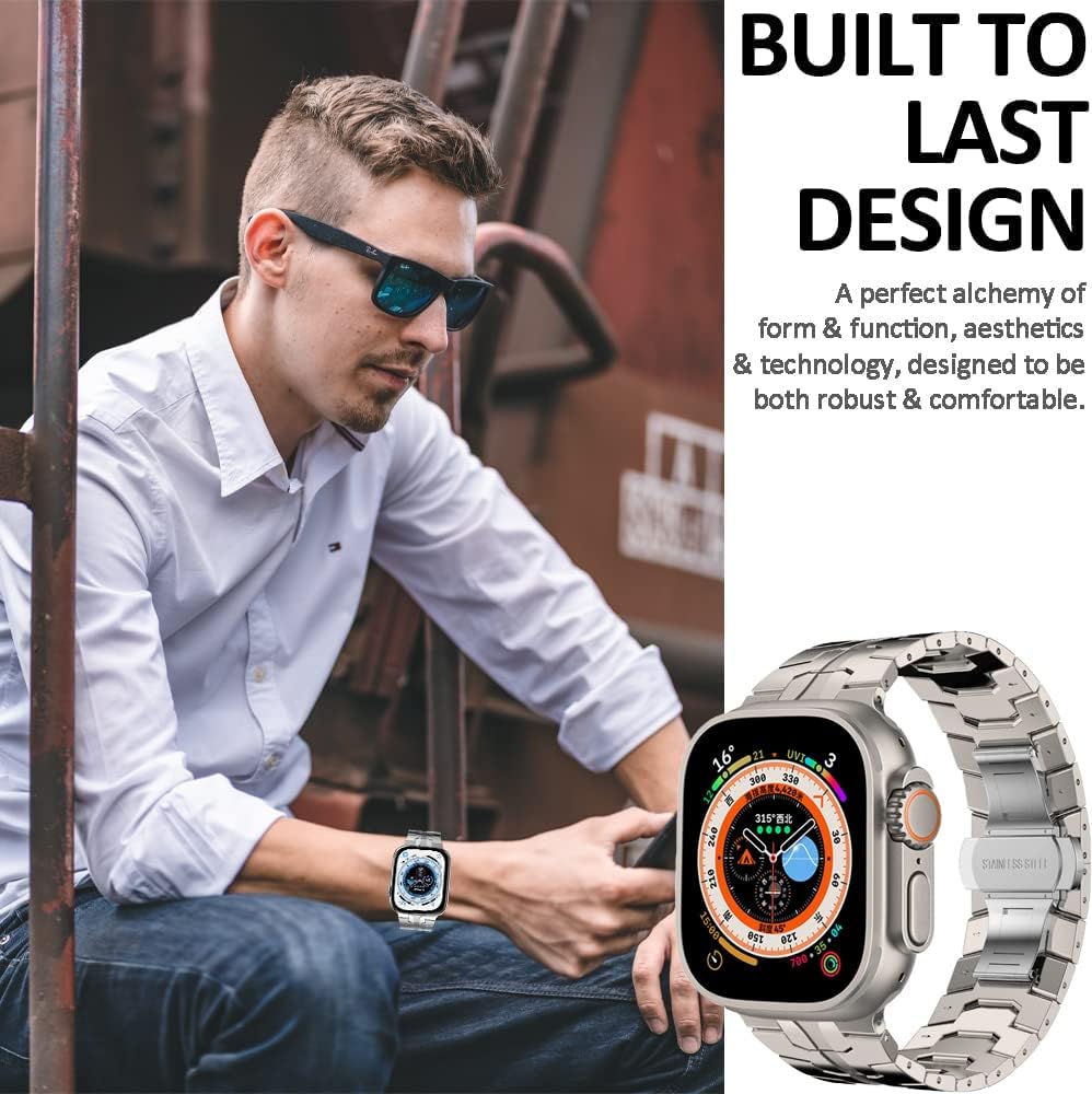 Miimall Kompatibel mit Apple Watch ultra/ultra 2 Armband 49mm, Edelstahl Metall Doppelte Faltschlies