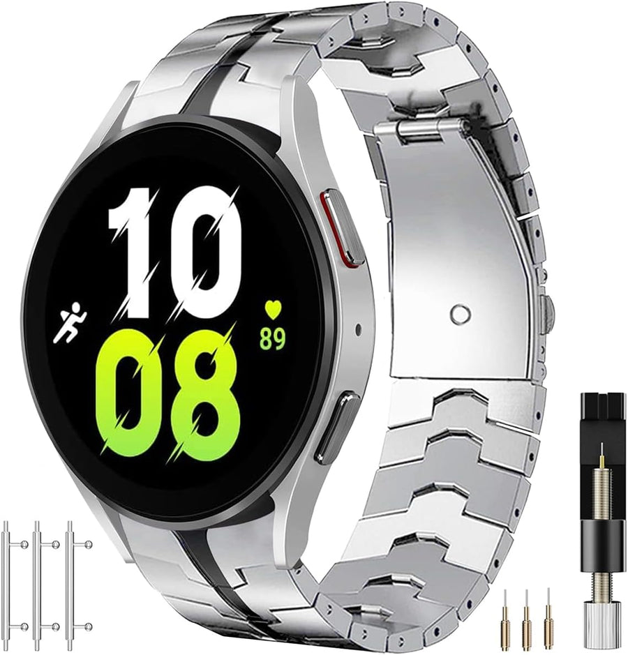 Miimall Kompatibel mit Samsung Galaxy Watch 6/5/5 Pro/4 Armband 40mm 44mm 45mm, Titanstahl Metall Do