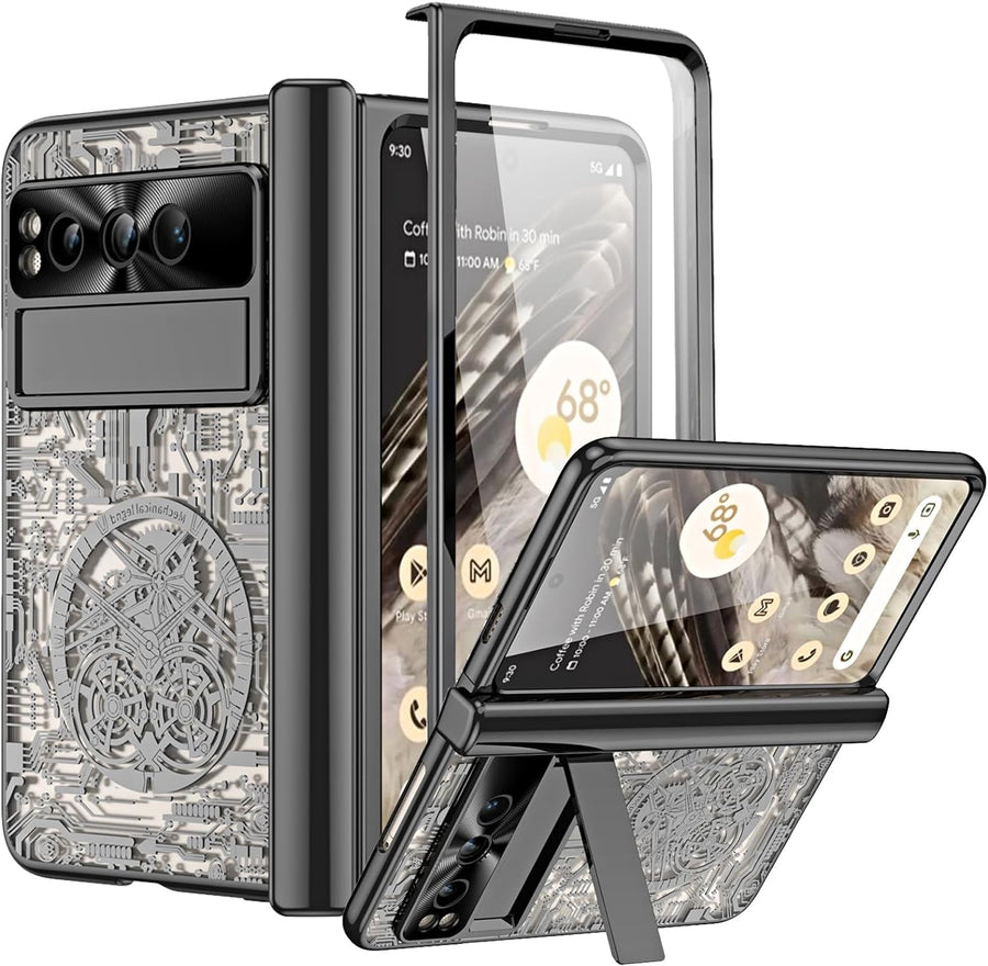 Miimall Kompatibel mit Google Pixel Fold Hülle mit Displayschutz+Scharnierschutz, [Galvanisiert Mech
