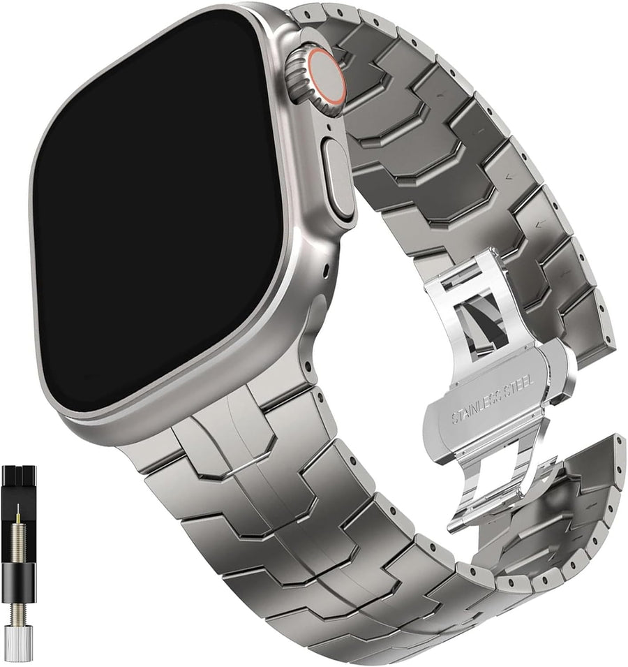 Miimall Kompatibel mit Apple Watch Ultra/Ultra 2 Armband 49mm, Edelstahl Metall Doppelte Faltschlies