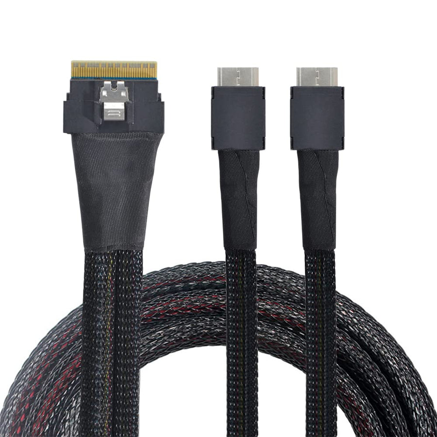 NFHK PCI-E Ultraport Slimline SAS Slim 4.0 SFF-8654 8i 74pin auf Dual Oculink SFF-8611 Kabel 50cm PC