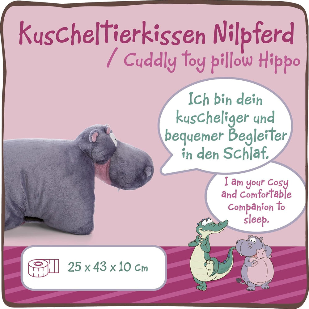 NICI 47983 Kuscheltierkissen Nilpferd DJ Nilbert 40x30cm – 2 in 1: Nachhaltiges Kuscheltier & Kusche