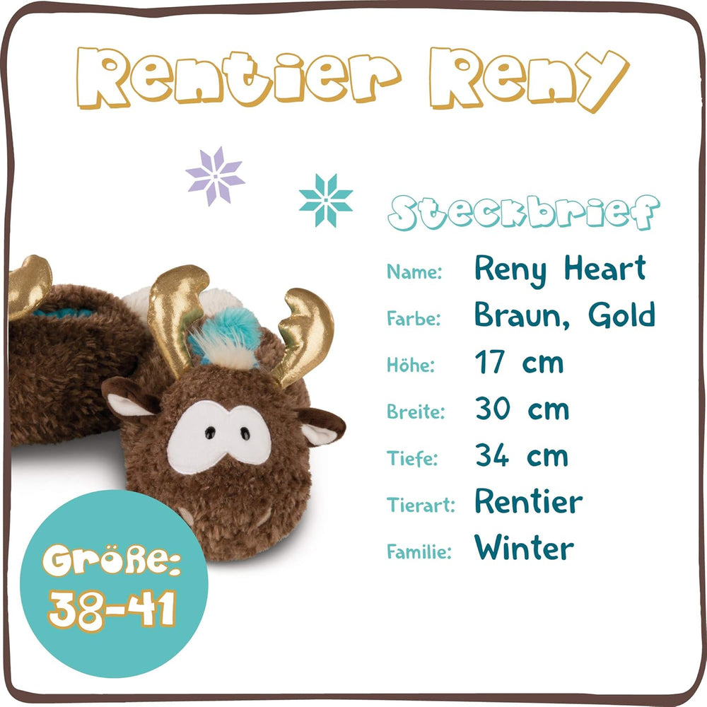 NICI Hauschuhe Rentier Reny Heart Gr. 38-41, L – Plüsch-Hauschuhe Kinder rutschfest – Warme Kuschelt