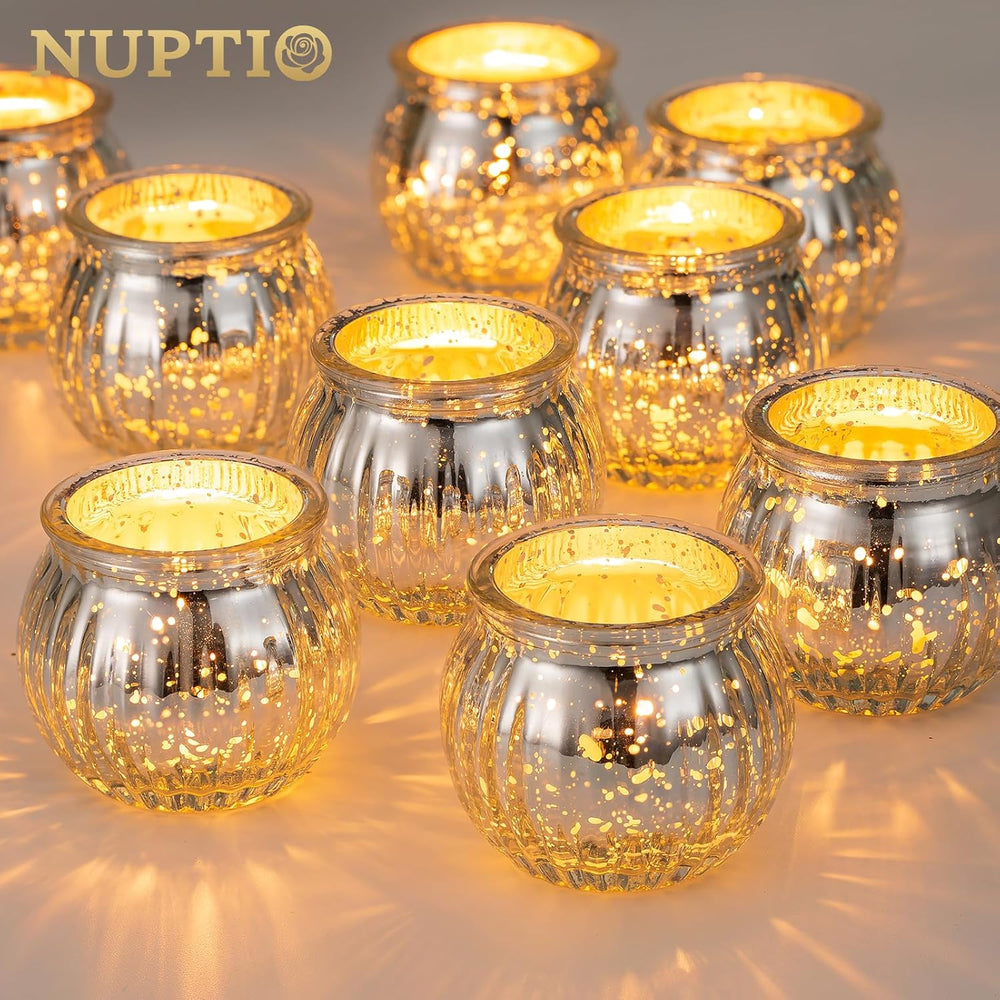 NUPTIO Glas Teelichtgläser Teelichthalter Teelichtglas: 12 Stück Silber Teelichter Halter Set Geripp