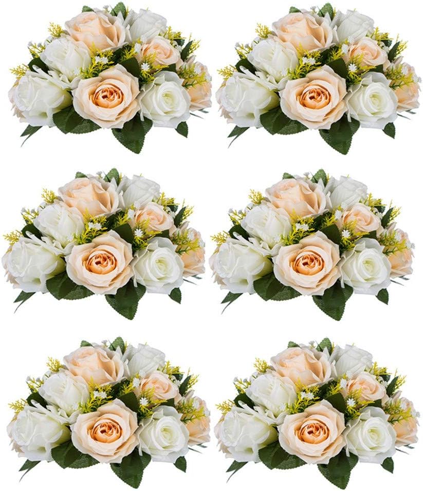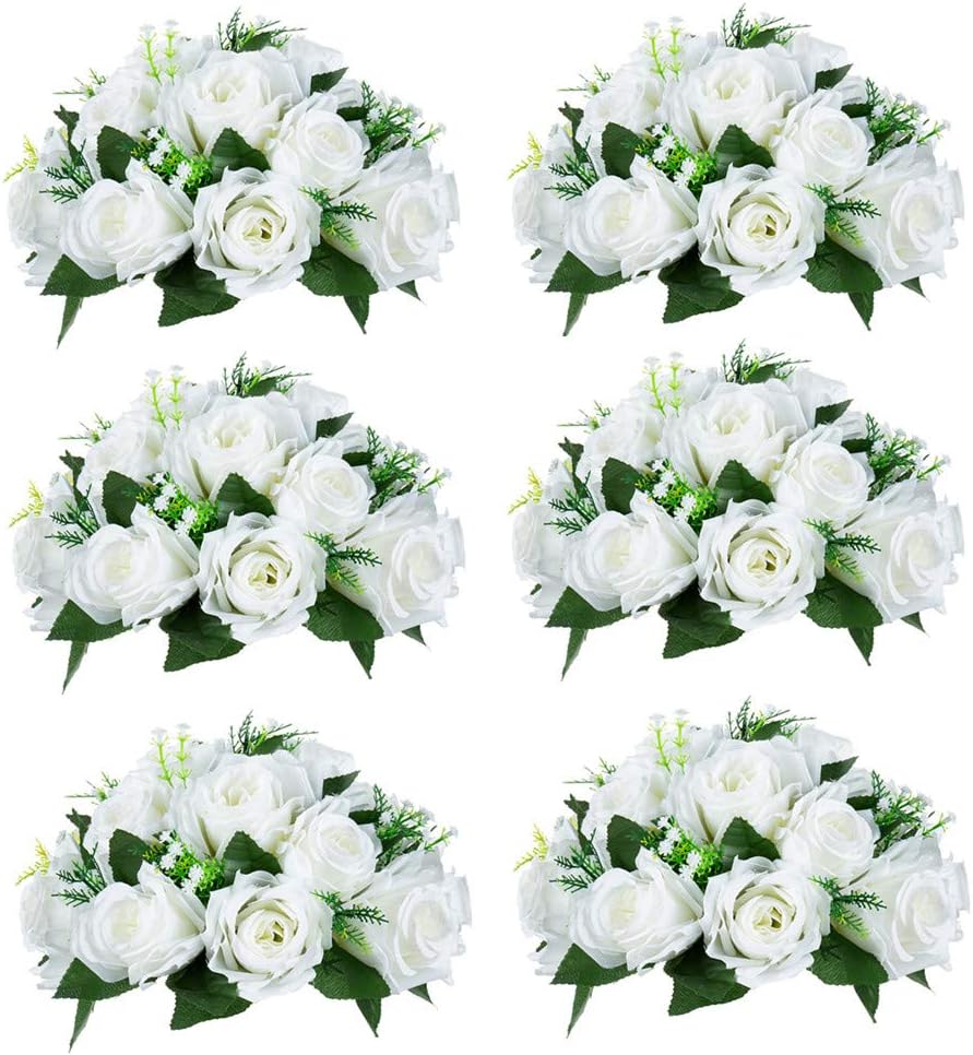 NUPTIO 6 Stück Künstliche Blumenstrauss, 15 Köpfe Kunststoff Rosen mit Sockel, Geeignet für Unser Ge