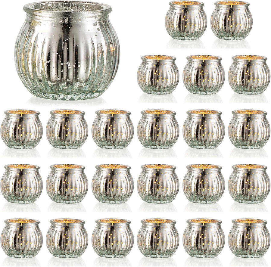 NUPTIO Glas Teelichtgläser Teelichthalter Teelichtglas: 24 Stück Silber Teelichter Halter Set Geripp
