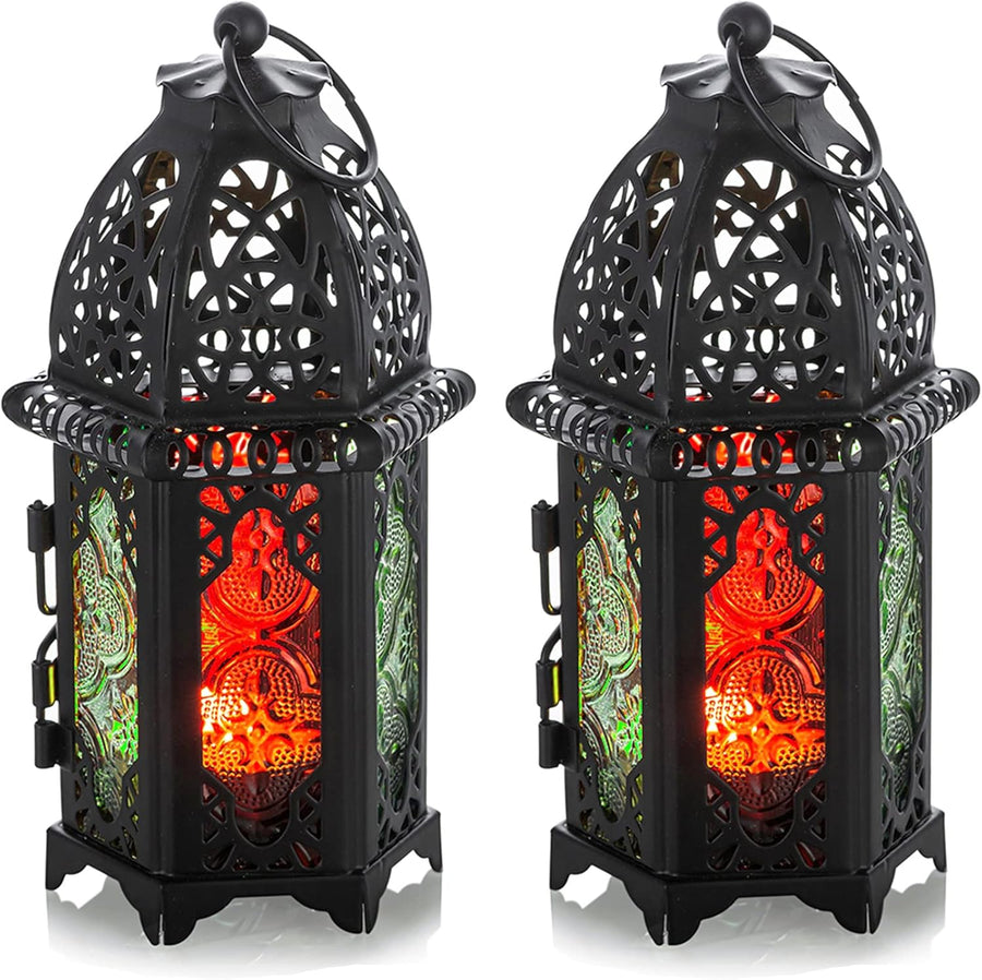 Nuptio 2 Stücke Metall Teelichthalter Kleine Grösse Hochzeit Mittelstücke Bunte Glas Hängende Latern