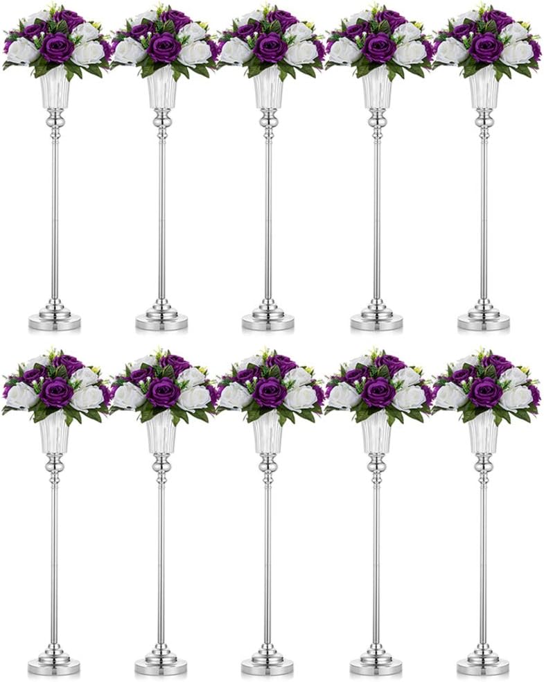 NUPTIO Blumenständer Metall Silber Vase: 10 Stück 77.5cm Hoch Blumenvase Hochzeit Ständer Trompete V